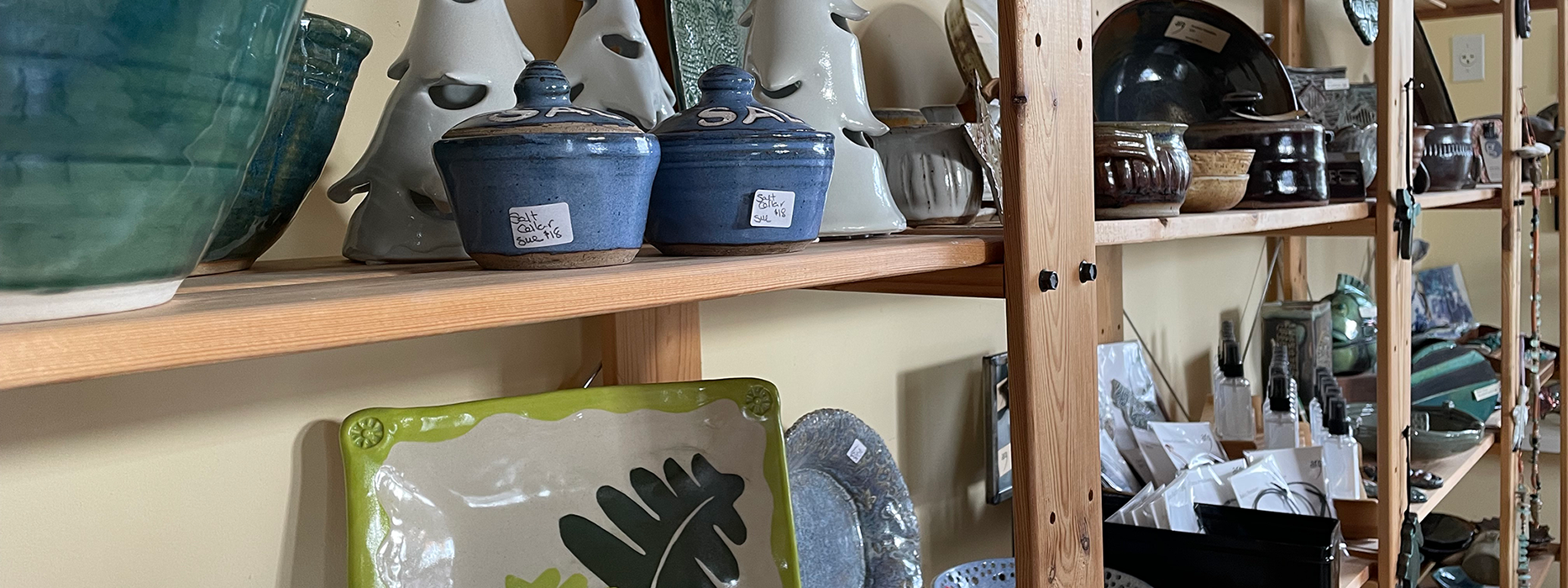 We invite you to come and take a look at our gallery, which is located at our studio, featuring high-quality ceramic gifts created by our members. We feature contemporary and traditional wheel-thrown and hand-built stoneware, porcelain, raku, saggar, and wood-fired creations. From functional to whimsical to decorative, we have something for everyone on your gift list. All glazes used on our functional pottery are food-safe and lead-free and are microwave, oven, and dishwasher safe.